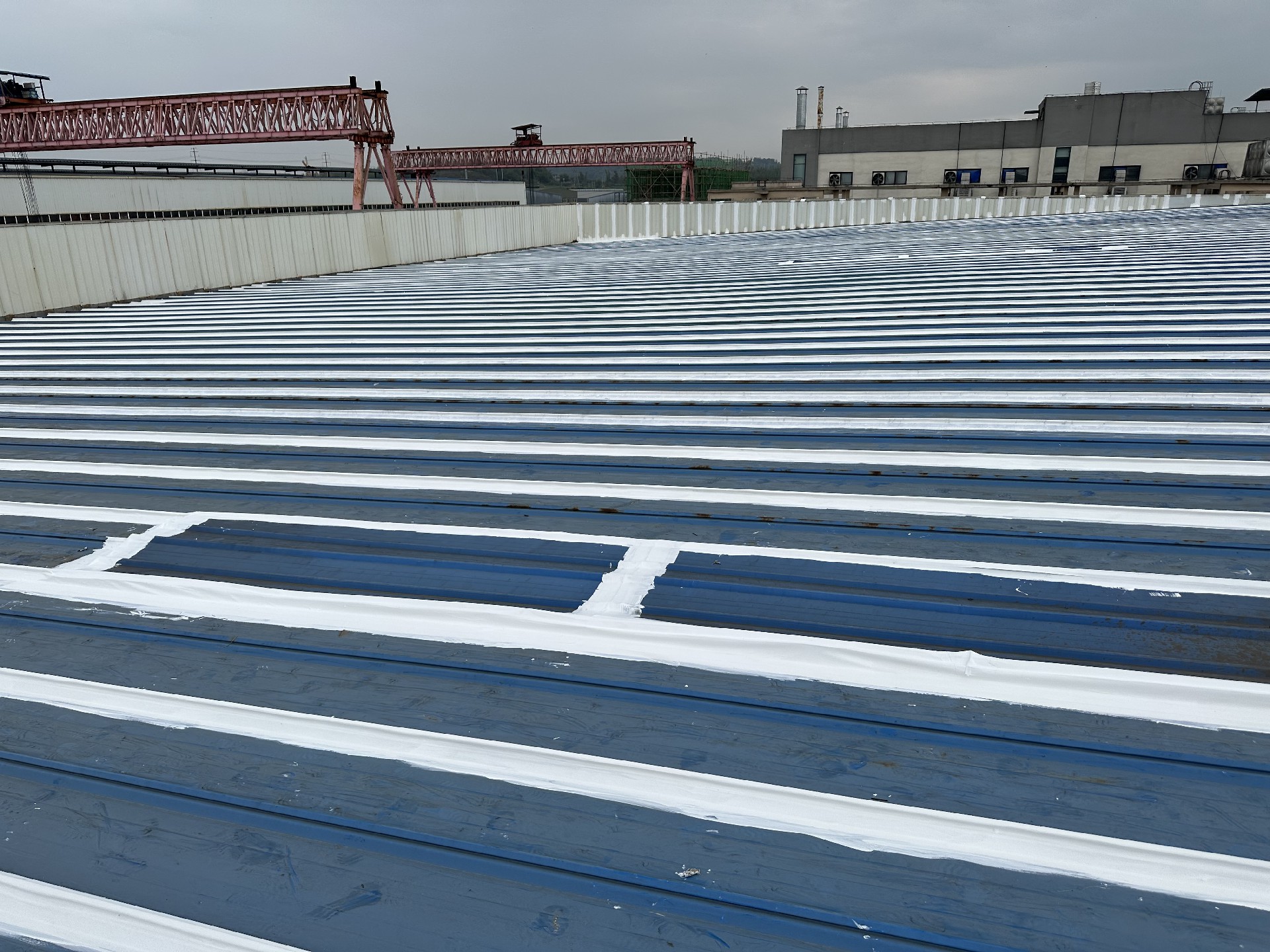 彩鋼屋面漏水怎么辦?采用SYR金屬屋面防水涂料配合專用縫織聚酯布施工處理是一種有效的方式