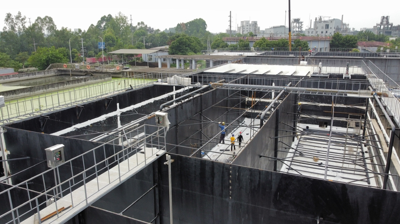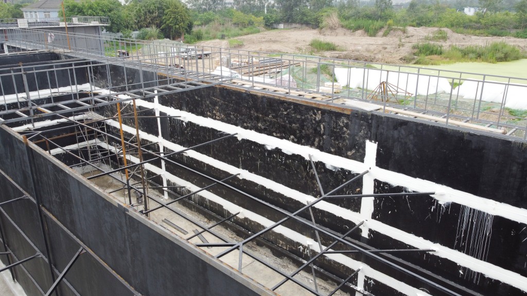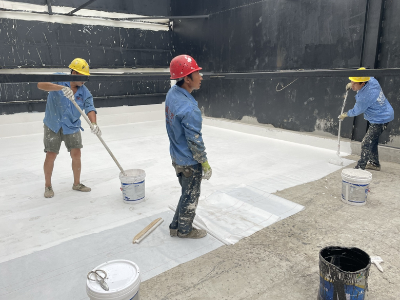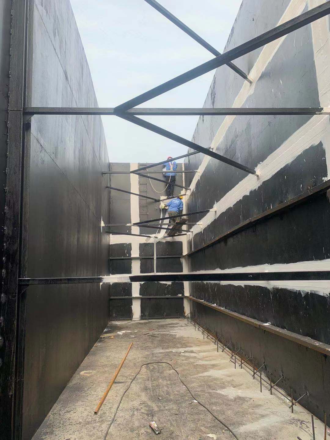我公司承接的新津工業(yè)污水處理廠提標改造項目水箱防水工程,現(xiàn)場的情況是升級改造修建了兩個鋼結構的水箱,由于是鋼結構的,焊接處縫隙較多,容易出現(xiàn)漏水的問題,處理漏水的方式比較麻煩,普通的材料在鋼結構鋼板上粘貼不牢固,并且是污水處理池,污水具有一定的酸堿腐蝕性,所以在材料的選擇上,要考慮到與鋼板的粘結力,耐酸堿腐蝕性等特點,甲方經(jīng)過找多家公司根據(jù)多種材料現(xiàn)場去做樣品后,實際情況檢測分析,最終確定選擇我公司制定的方案,采用蜀禹SYR金屬防水系統(tǒng)針對水箱防水處理,處理后效果很好。