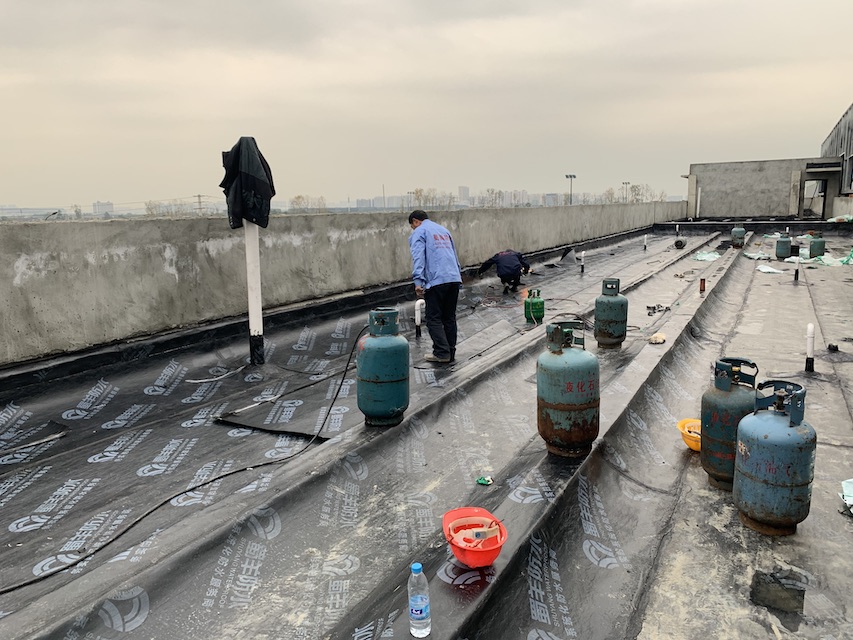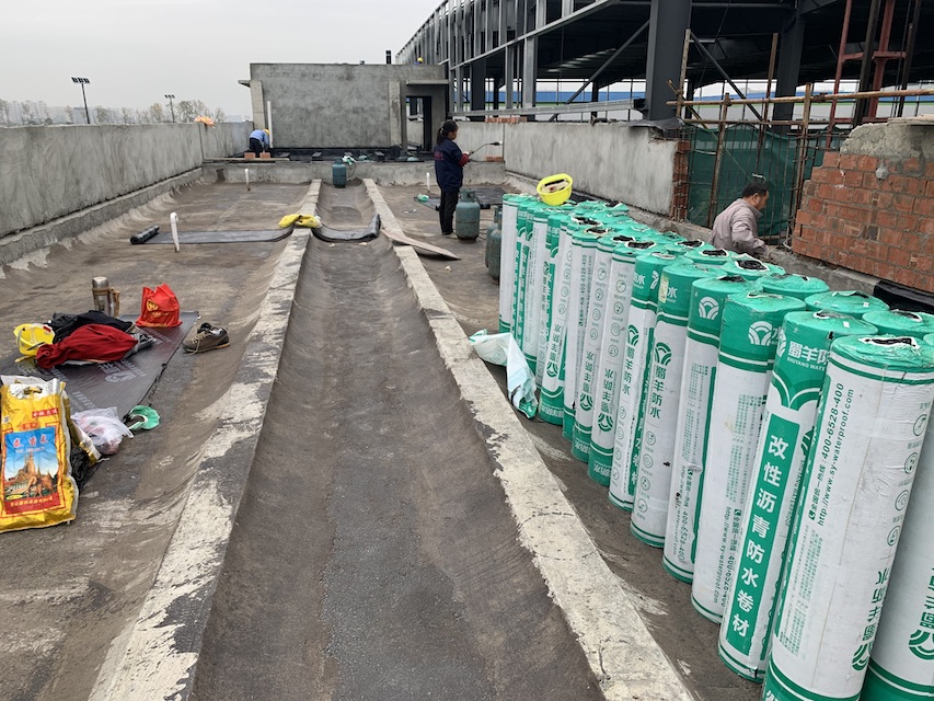 我公司承接的成都市郫都區(qū)康強三路的立航科技工業(yè)園的5#生產車間和高壓配電室的屋頂防水工程,按照設計圖紙要求,采用蜀羊的SBS改性瀝青防水卷材施工雙層防水卷材。