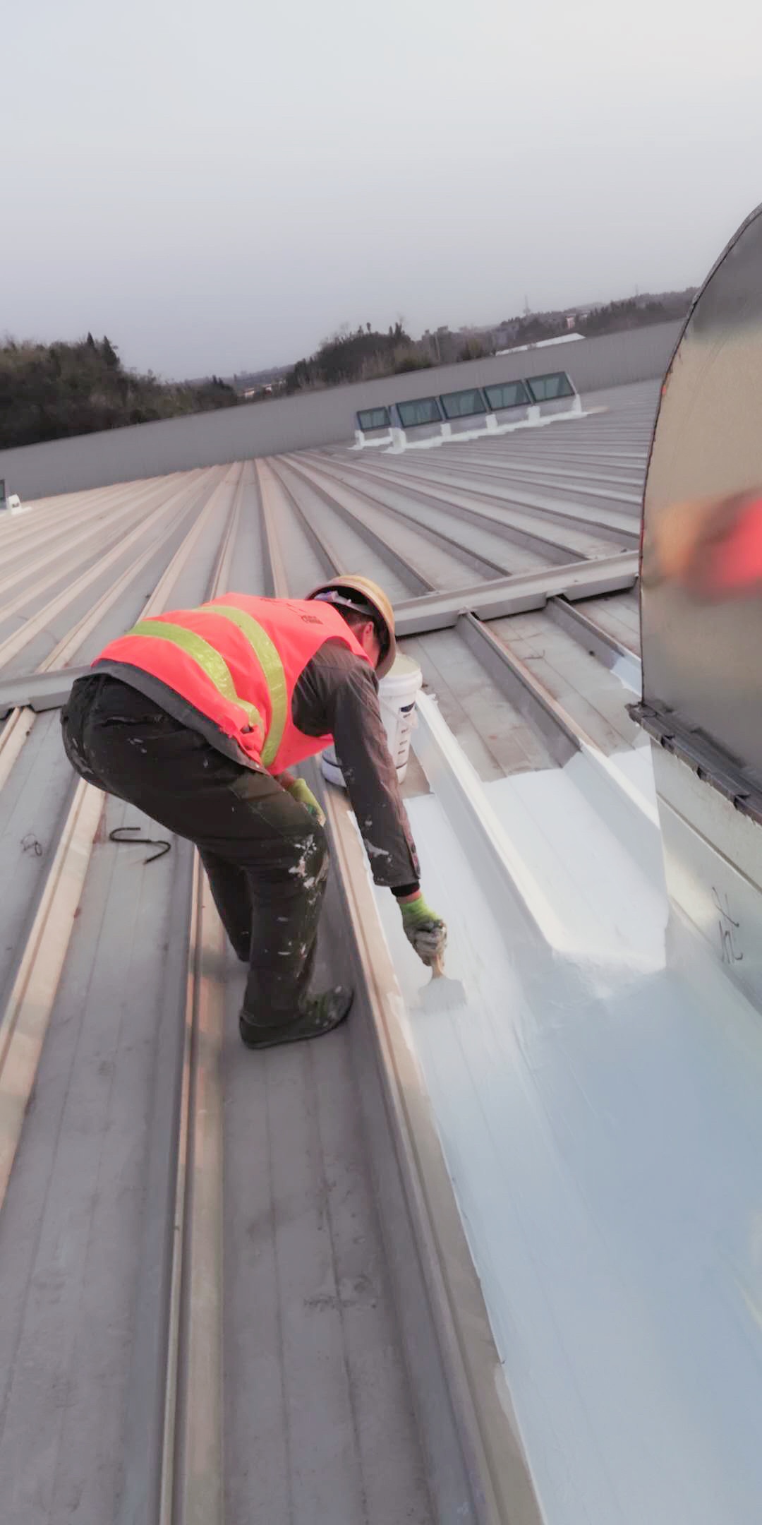 我公司承接的中國牙谷愛齊口腔醫療設備生產基地一期廠房金屬屋面防水工程,工程地位于四川省資陽市高新區,采用本公司的SYR金屬屋面專用防水涂料配合專用的縫織聚酯布,處理效果好。
