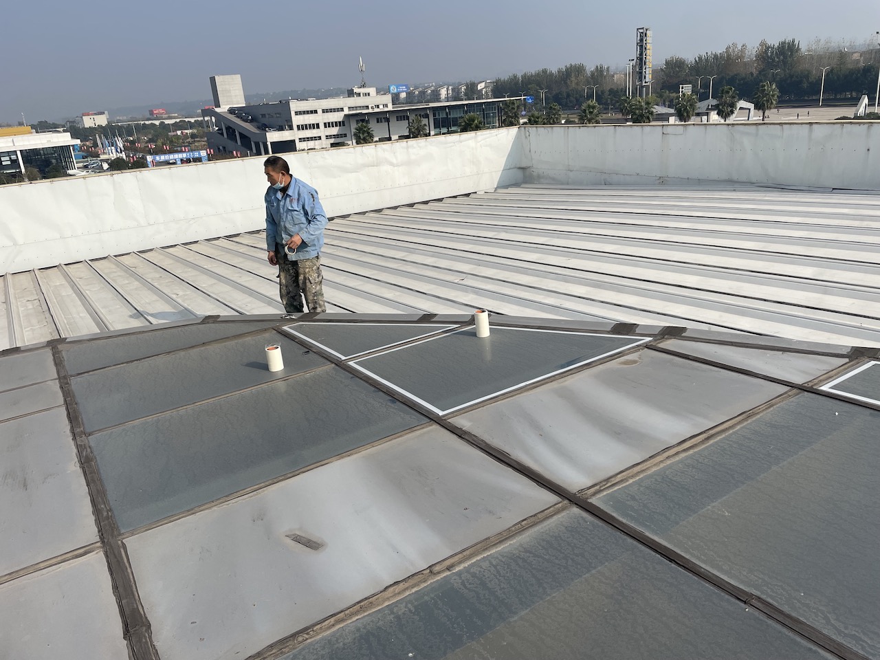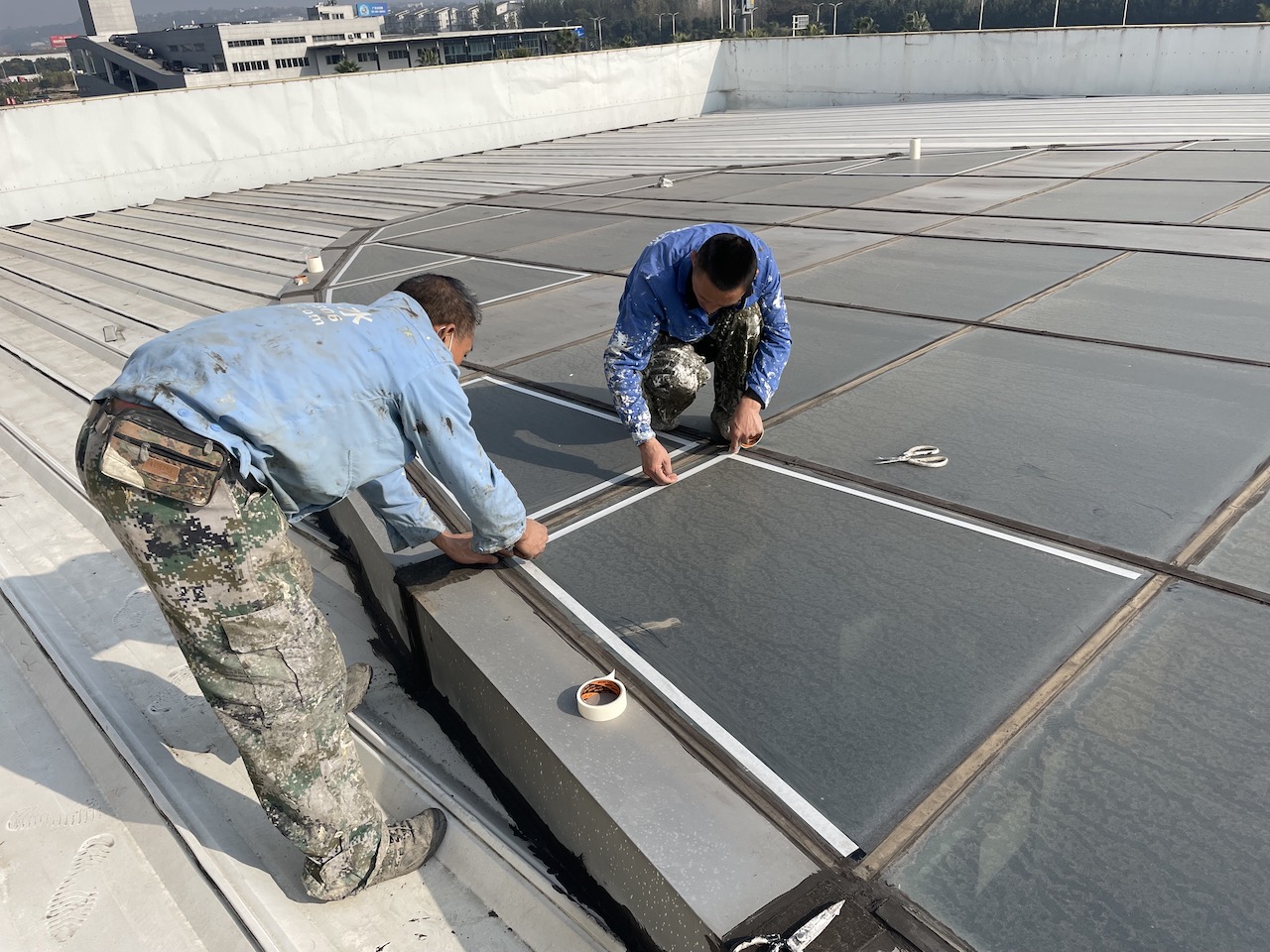 位于綿陽(yáng)市永興鎮(zhèn)遼寧大道汽車博覽中心的綿陽(yáng)雷克薩斯4S店,展廳頂部中間是玻璃頂,玻璃頂?shù)牟AЫ涌p位置漏水問(wèn)題,之前采用瀝青防水涂料、自粘卷材、SBS熱熔改性瀝青施工處理均為解決到問(wèn)題,依然是當(dāng)時(shí)解決到了,沒(méi)過(guò)多久下雨又開(kāi)始漏了,主要就是使用的材料不是外露型的,玻璃頂?shù)臏囟雀撸?yáng)暴曬很快就不行了,下雨就漏水了,后來(lái)找到我們公司,我們公司根據(jù)多年的施工經(jīng)驗(yàn),針對(duì)玻璃頂?shù)钠唇涌p采用SYR金屬屋面防水涂料配合縫織聚酯布施工處理,處理了之后效果很好,業(yè)主方很滿意。