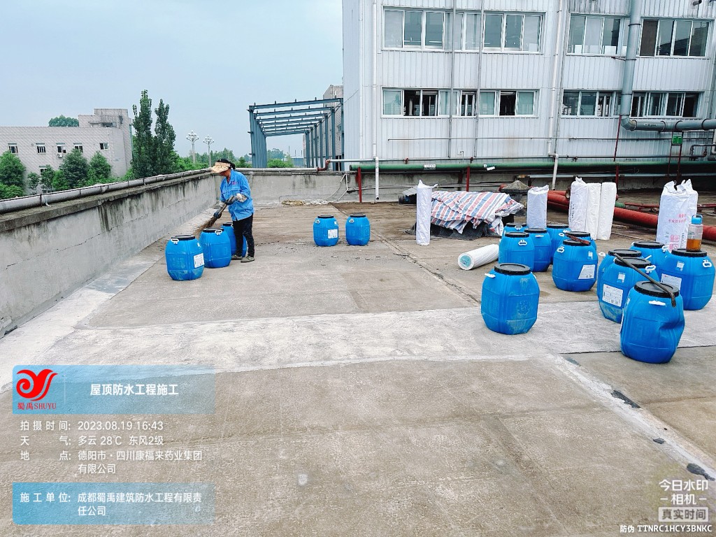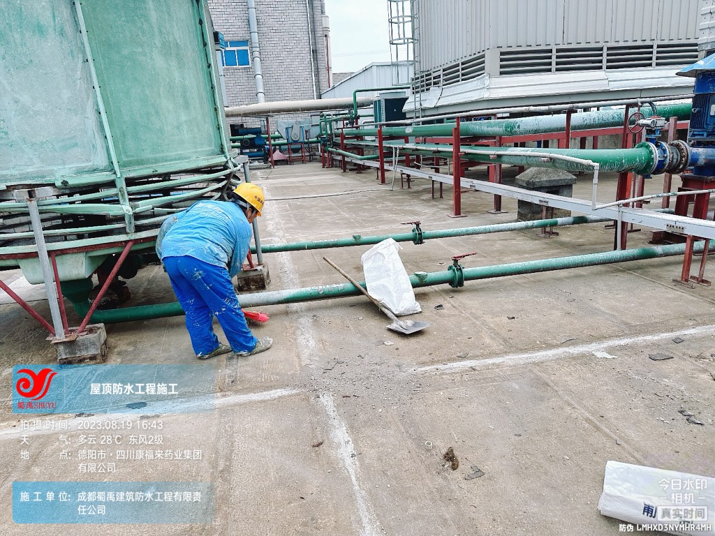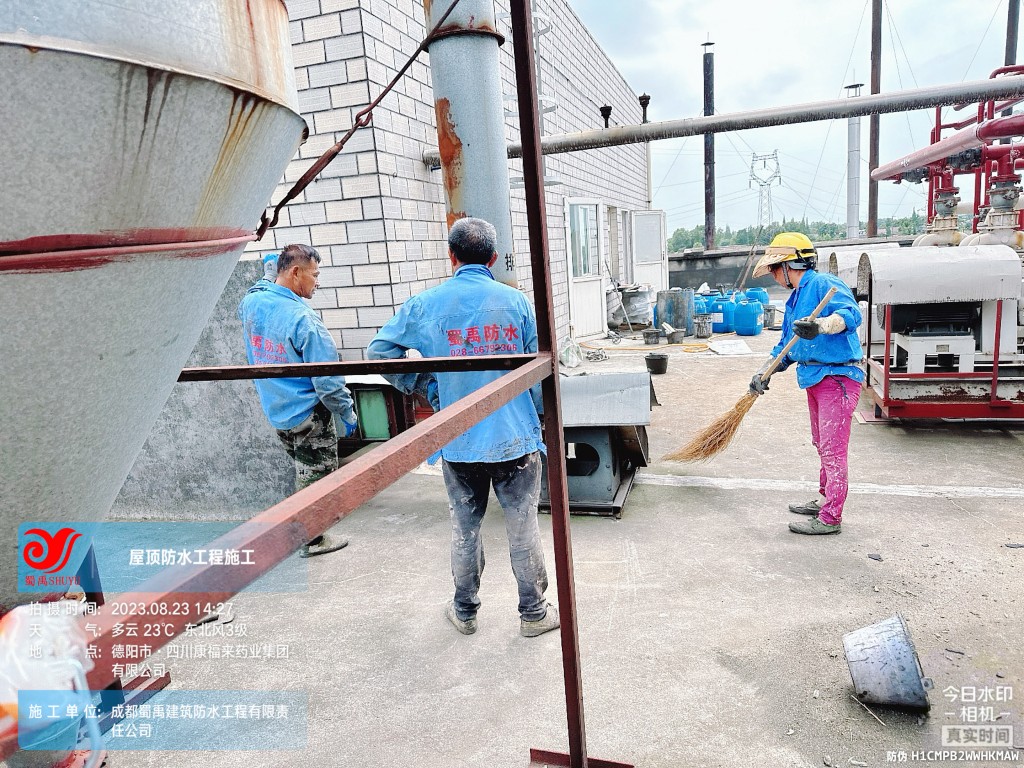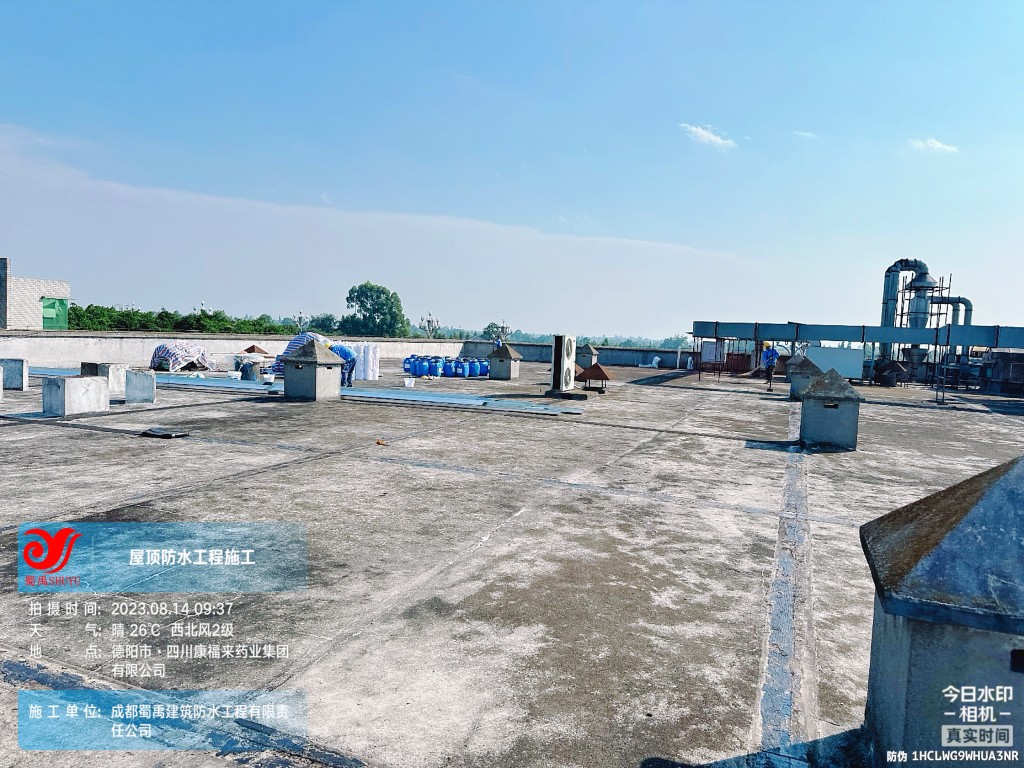 關鍵詞:成都蜀禹建筑防水工程有限責任公司施工四川康福來藥業集團有限公司前提車間、制劑車間廠房屋頂防水施工,屋頂防水,樓頂防水,防水補漏,廠房防水,防水隔熱,屋面防水,樓面防水