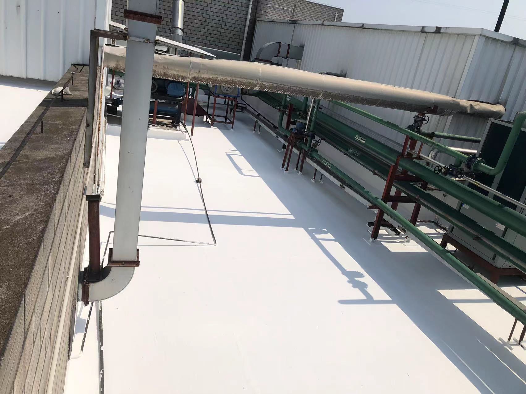 我公司針對此廠區兩棟廠房屋頂防水施工完畢之后,經過下雨檢測無問題,一次性解決到了屋頂漏水難題。