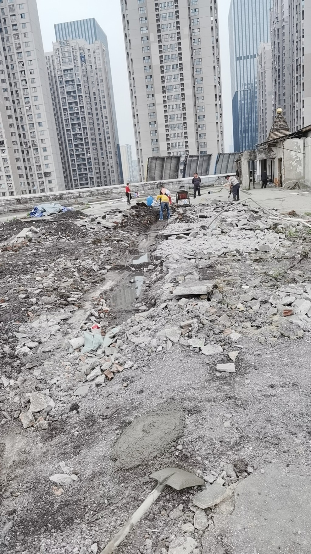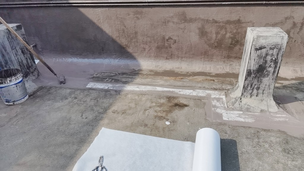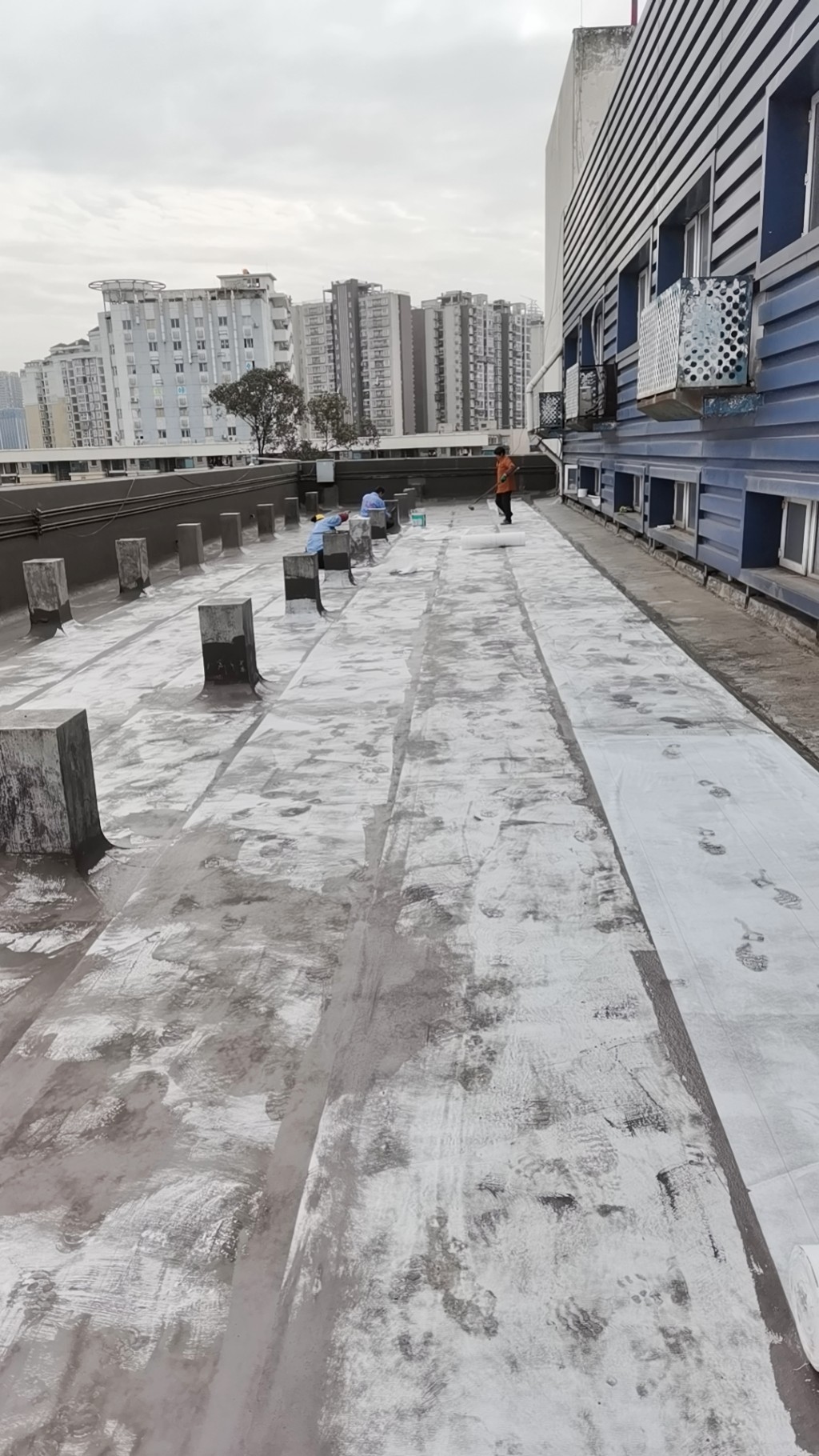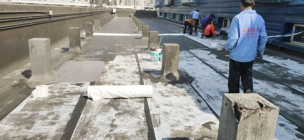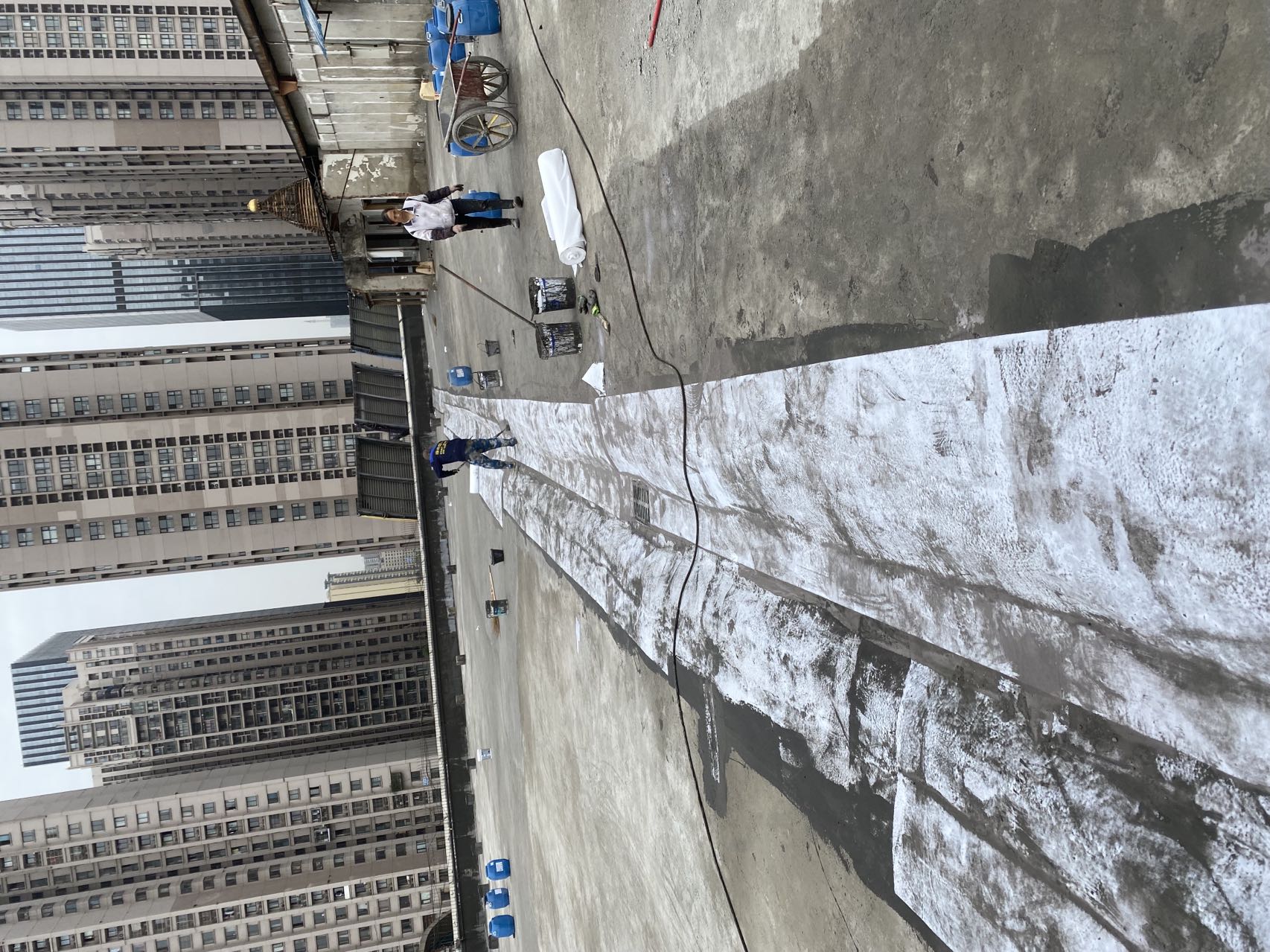 這個工程具有相當大的施工難度,主要是因為屋頂修建了很多花臺,并貼了瓷磚,導致屋頂非常雜亂。為了確保工程的順利進行,在施工前,我們首先將屋頂的花臺拆除,地面的瓷磚以及剛性保護層拆除,并將建渣搬運下樓清運出場。待地面平整好后,我們在基層表面滾涂混凝土液體硬化劑,對基面進行固化處理。