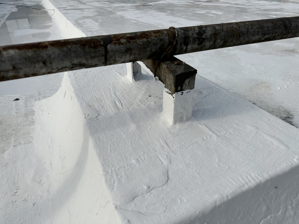 屋頂表面采用聚合物防水涂料、SYR金屬屋面防水涂料、聚酯布進行防水施工