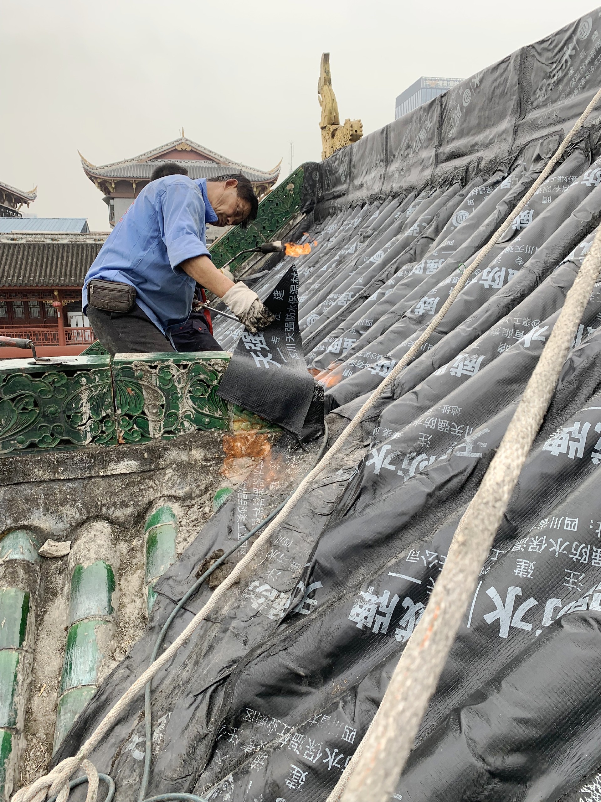 在開始施工前,我們首先進行了現場勘查,了解了屋面的具體狀況,包括斜坡的角度、瓦片的材質和狀態、以及需要保護的設施等。根據這些信息,我們制定了詳細的施工方案。