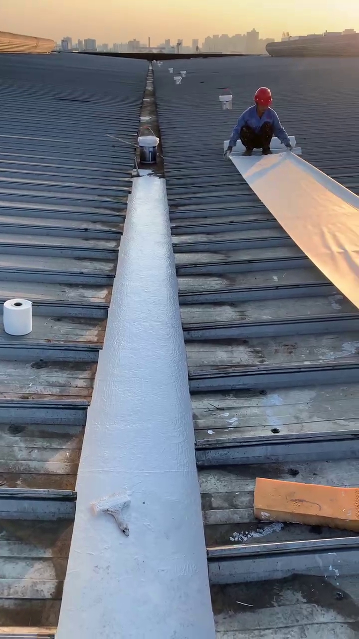 針對這一情況,成都蜀禹建筑防水工程有限責任公司迅速制定了科學合理的施工方案。他們首先對天溝內部進行了徹底的清理,然后使用彩鋼板插入已爛掉的下水管內,滲入漏斗進行固定。接著,他們采用SYR金屬屋面專用防水涂料配合縫織聚酯布進行防水防腐補漏施工處理。此外,為解決銹蝕問題,施工團隊在天溝內滿涂刷納米固銹劑進行基面固銹處理。待涂料干燥后,他們在天溝的底部及兩側面涂刷了SYR金屬屋面專用防水涂料并滿鋪貼專用縫織聚酯布,表面再涂刷SYR金屬面專用防水涂料。待所有涂料干燥后,他們又對表面進行了一次涂刷SYR金屬屋面專用防水涂料,使整個天溝得到了全面的保護。