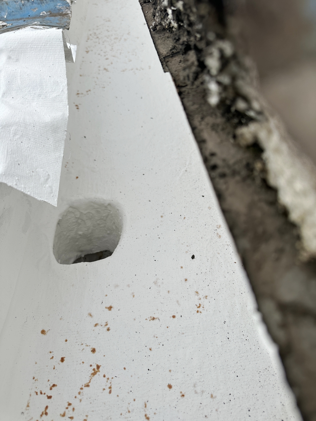 以上圖中可以看到,天溝都已經(jīng)銹蝕穿孔,可以看到外面亮光了