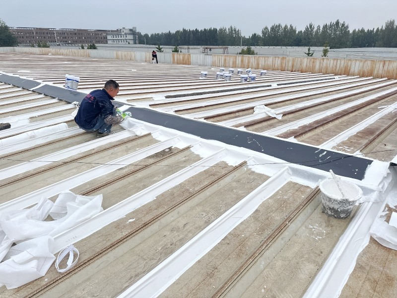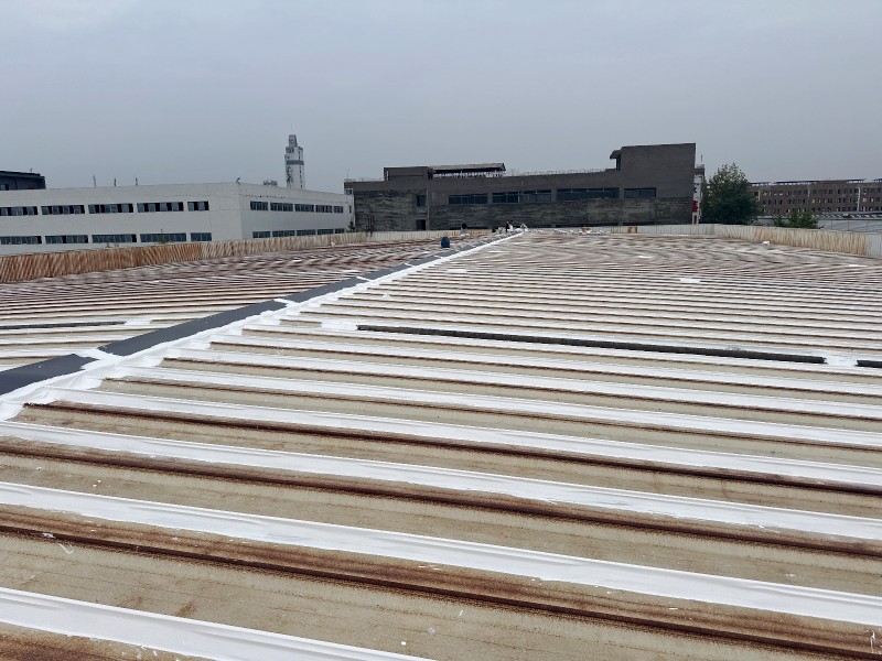 接下來,蜀禹防水公司采用了納米固銹進行基面固化處理。這一步驟能夠防止彩鋼瓦表面生銹,并進一步增強基面的附著力,使防水涂料更好地與基面結合,從而提高防水層的穩定性和耐久性。